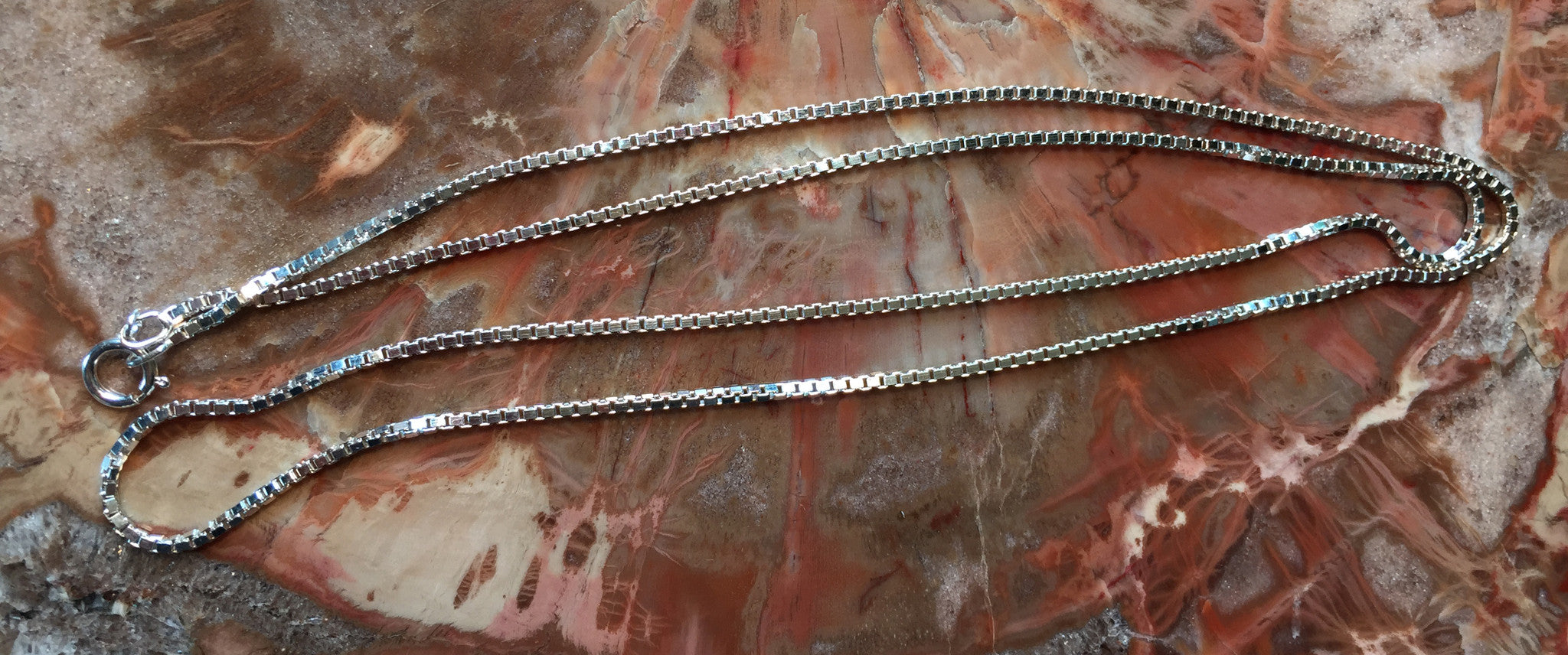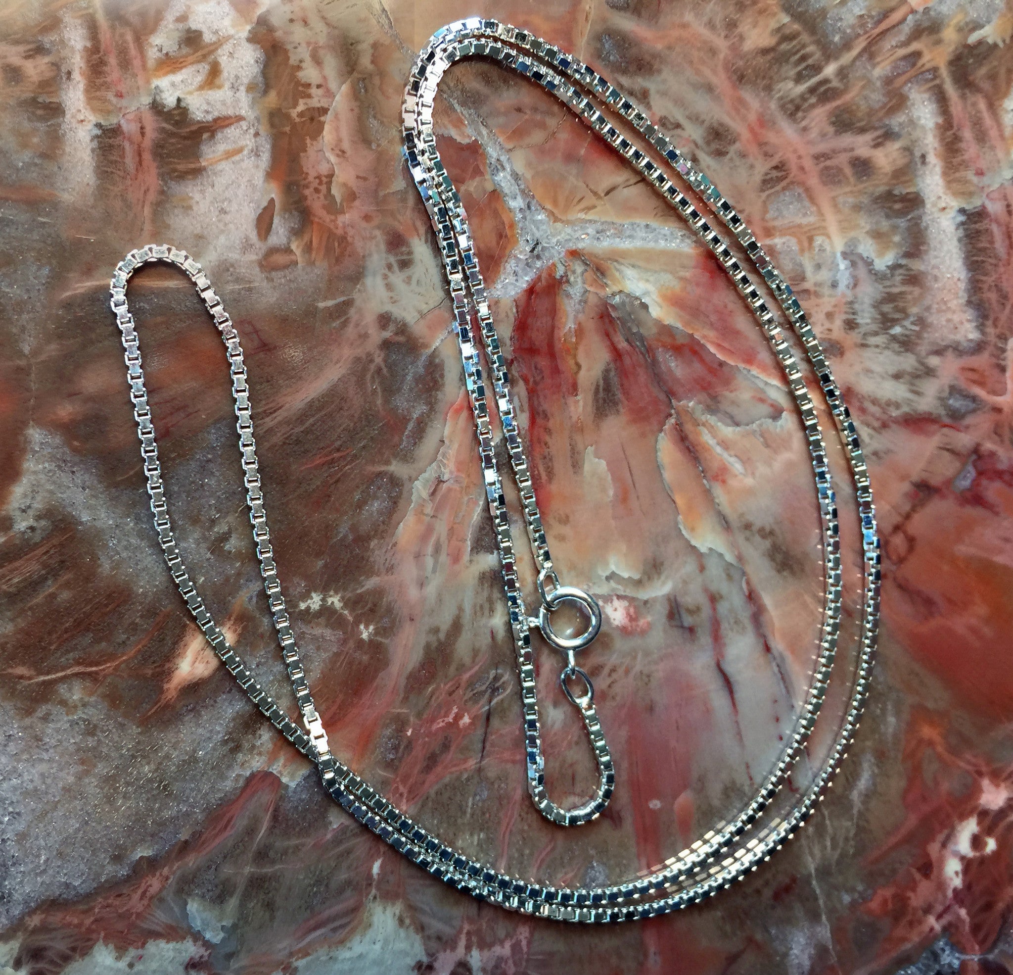 Sterling silver box chains to accent our Montana Agate pendants. This made in Montana jewelry makes a unique gift.