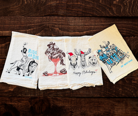 This will create Montana vibe to your kitchen! Locally designed and hand-printed in Bozeman, Montana. Material: Natural Flour Sack towel Is this a Gift? We are happy to include your message. Simply...